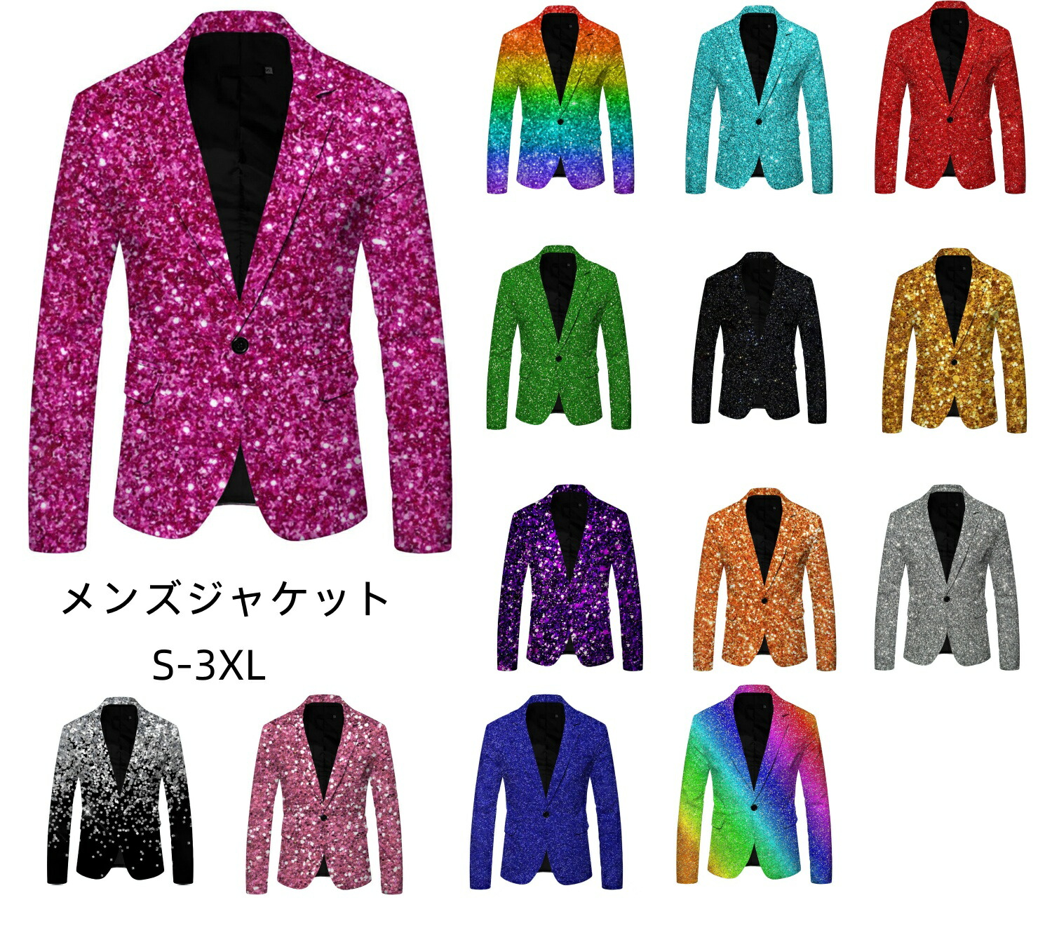 メンズジャケット カラフル 舞台衣装 キラキラ ジャズダンス服 男性 大きいサイズ おしゃれ ステージ衣装 礼服 二次会 パーティー フォマール衣装 司会者 演出服 S-4L 発表会 イベント 14色