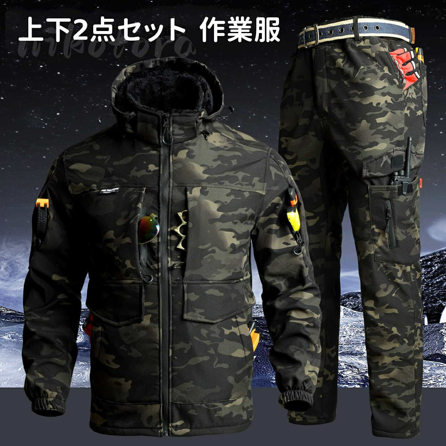 大きいサイズ 制服 上下セット 裏起毛 ジャンパー 迷彩柄 メンズ おしゃれ ツイル生地 ズボン ユニフォーム かっこいい