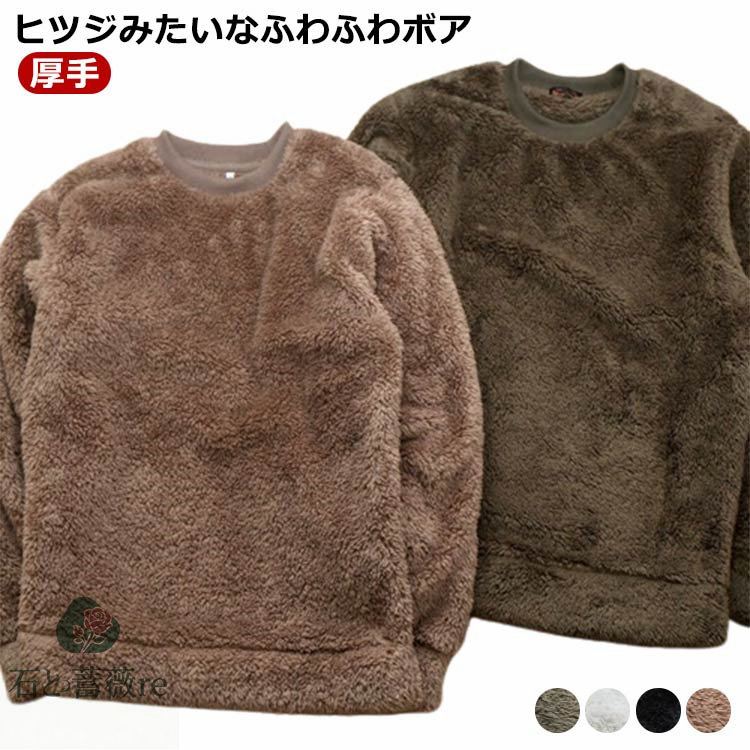 超モコモコ ボアフリース メンズ 無地 メンズ 厚手 トレーナー