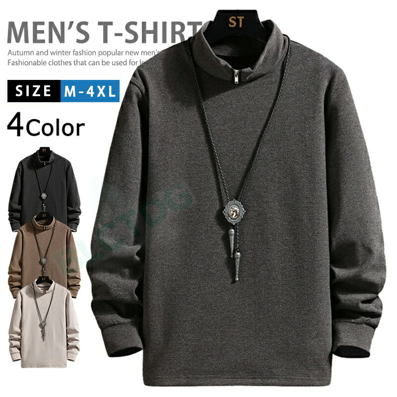 ハイネックメンズトレーナーボアフリースカットソー長袖トップスハーフゴルフ