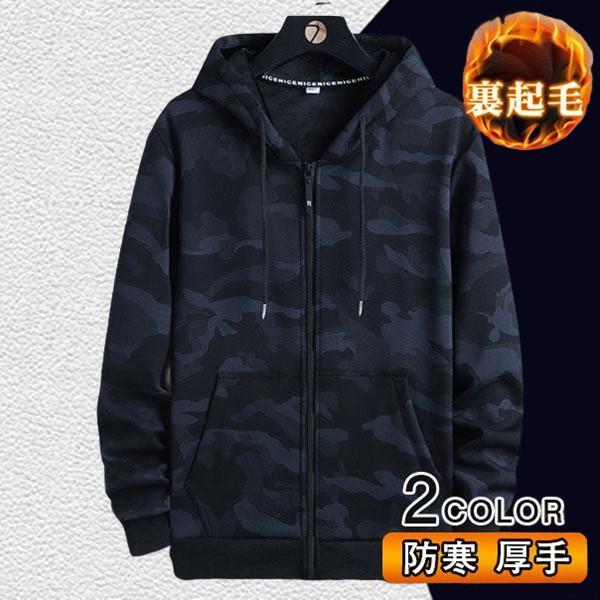 パーカー メンズ 迷彩 ジップパーカー フード付き 裏起毛 裏ボア ジャンパー アウター 無地 防寒 カジュアル 厚手 あったか 秋冬