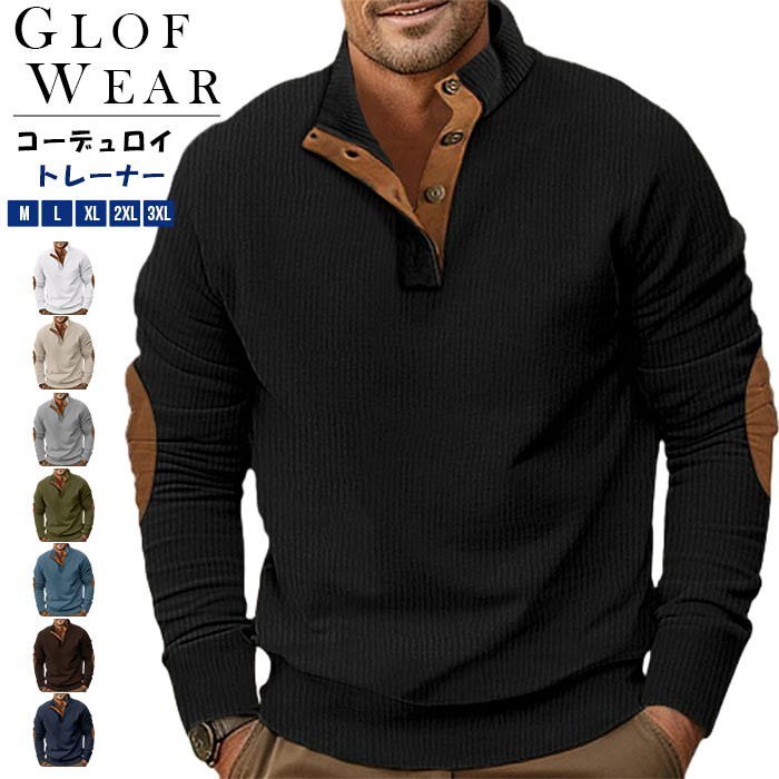 コーデュロイ トレーナー ゴルフウェア プルオーバー トップス 長袖 無地 30代 40代 50代 父 秋 冬 配色 大人 ファッション 秋物 春 大きいサイズ メンズ おしゃれ カジュア レディース