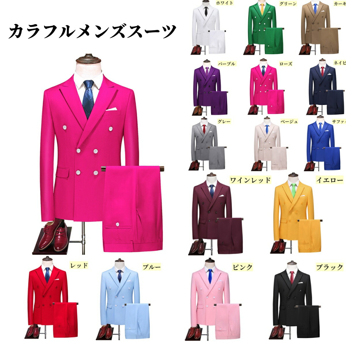 メンズスーツ カラフルスーツ ダブルスーツ 紳士服 ジャケット パンツ 大きいサイズ おしゃれ 結婚式 披露宴 礼服 パーティー フォマール衣装 司会者 演出服 発表会 イベント アイドル衣装 15色