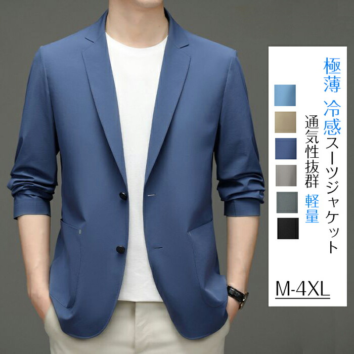 メンズ耐シワ性極薄アイスシルクスーツジャケット、ブレザー メンズ ブレザー スーツジャケットメンズ カジュアル アイスシルクスーツジャケット ゴルフウェア 大きいサイズ 春服 UVカッ ブレザーメンズ