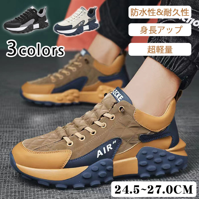 シューズ スニーカー カジュアルシューズ 結ばない靴紐 身長アップ シークレットスニーカー 白黒 厚底 メンズ 父の日