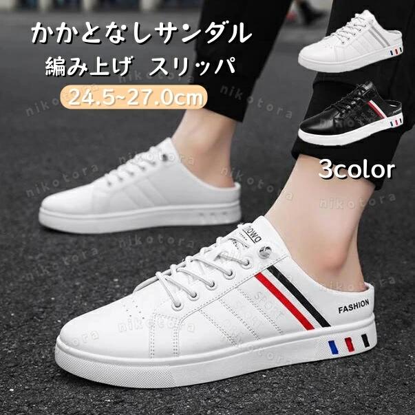 スニーカーサンダル PUレザー サボ レースアップシューズ ローカット フラットサンダル スリッポン スリッパ かかとなし メンズ