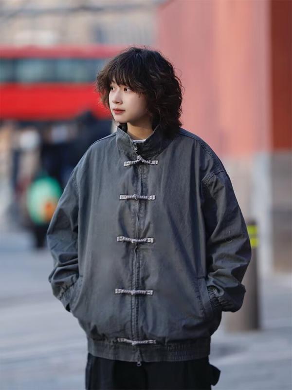 ジャケット メンズ レディース 中華風 スタンドカラー 無地 チャイナボタン 長袖 ライトグレー ダークグレー ゆったりサイズ トップス