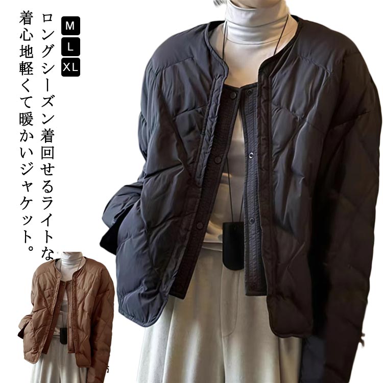 防寒 中綿コート 長袖 秋冬 秋服 インナー ゆったり 前開き あったか 暖かい 中綿ジャケット ノーカラージャケット 大きいサイズ 冬服 ルームウエア 軽量 体型カバー レディース