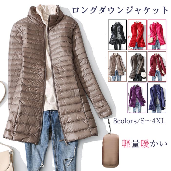 ダウンコート ライトダウン ロング丈ダウンコート 薄型 軽量 ダウンジャケット 収納ポーチ付き レディース コート アウター 無地 防寒 冬 秋冬 大きいサイズ シンプル