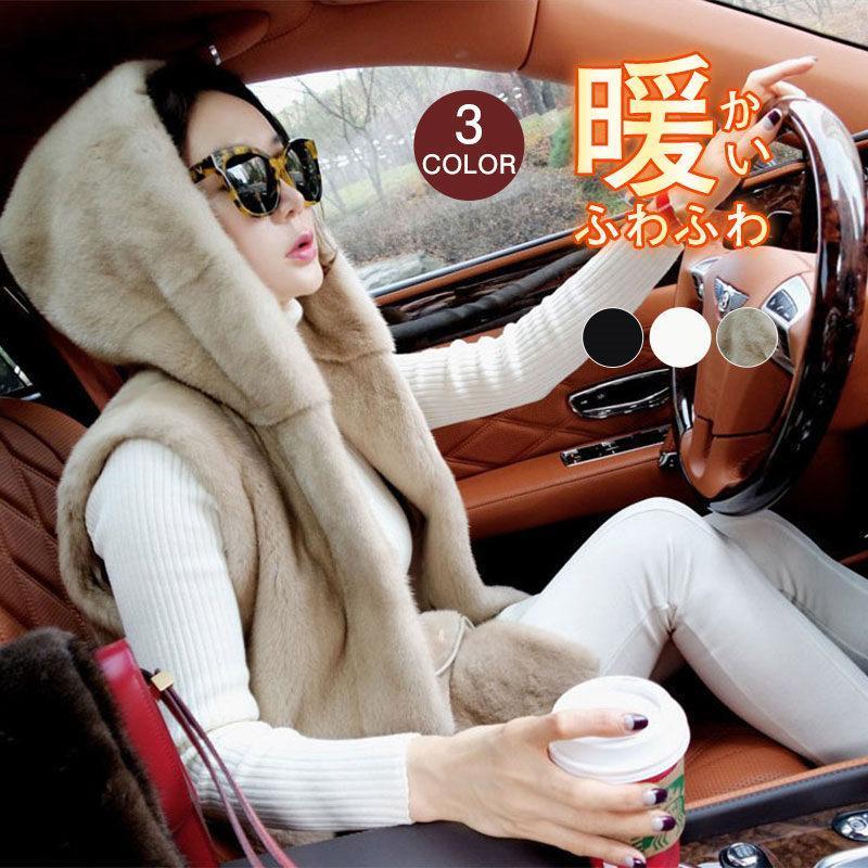 新作 毛皮ベスト ファーベスト レディース アウター チョッキ 毛皮コート ふわふわ フード付き フェイクファー モコモコ 秋冬コート 暖かい 防寒 高級感