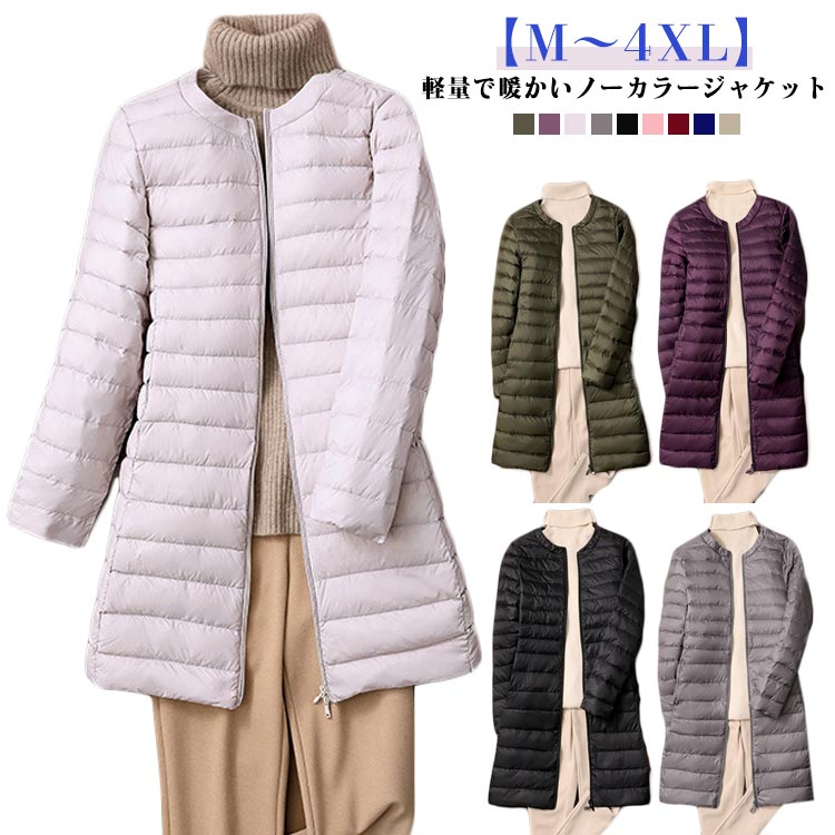 送料無料 ~4 ロング丈ジャケット 軽い ノーカラー ダウン風
