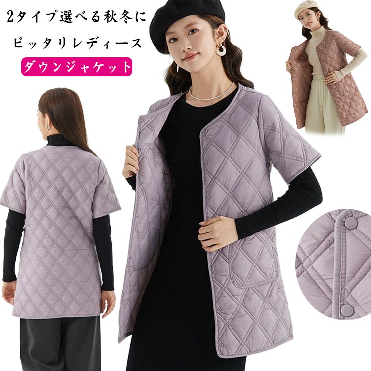 インナー 半袖ジャケット 寒さ対策 ミドル丈 ポケット付き ダウンジャケット 事務所 軽量 カーディガン レディース 保温 防寒 アウター 冷え対策 シンプル 裏起 あったか