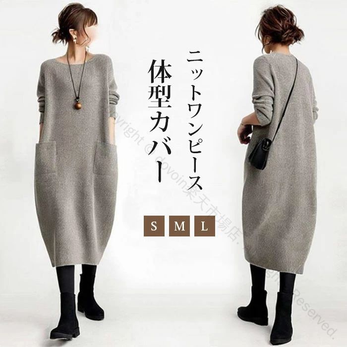 ニットワンピース 秋冬 きれいめ 大きいサイズ リブニット バルーン ロングワンピース レディース ミモレ丈 バルーンワンピース おしゃれで暖かい着心地抜群のデザイン 長袖