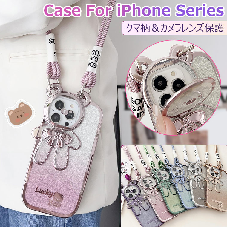 一部在庫 iPhone 17 Pro ケース クマ かわいい 16 おしゃれ 15 Max ショルダータイプ クリア iPhone14 pl 可愛い