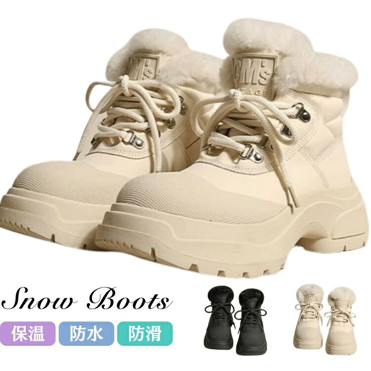 スノーブーツ レディース 黒 ベージュ 北海道 滑らない 防水 撥水きれいめ 歩きやすい おしゃれ 暖かい 痛くない ボア付き 冬用 スノーシューズ 厚底 防寒 ウインターブーツ 雪遊び 通勤 雪靴
