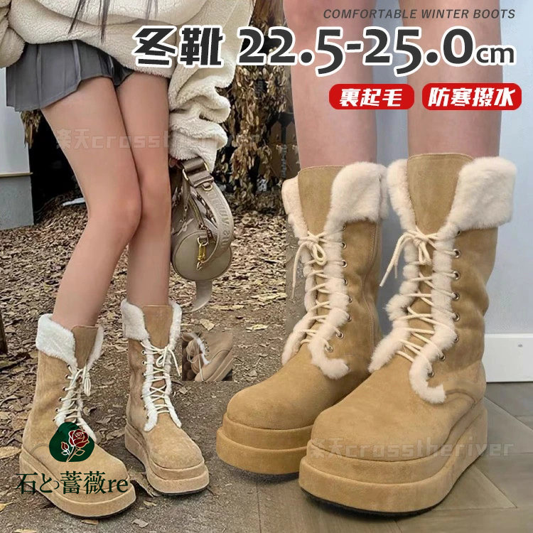 ロング レディース スノーブーツ 北海道 滑らない靴 冬靴 滑らない ムートンブーツ 厚底 撥水 ボアブーツ 女性 裏起毛 スノーシューズ 韓国 ブラウン 茶色 綿靴 長靴