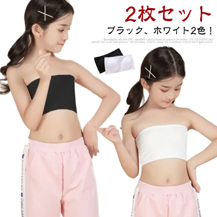 キッズ ブラック 無地 ダンス衣装 カップ付き ジュニア チューブトップ ダンス ベアトップ 子供服 ハーフトップ 伸縮素材 ホワイト こども ファーストブラ スポーツブラ ブラトップ