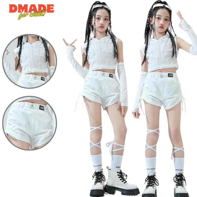 キッズダンス セットアップ トップス ショーツ 無地 白 ホワイト レッグウォーマー レディース かっこいい ジャズダンス キッズ 子供 おしゃれ ヒップホップ 可愛い ステージ衣装 ダンス衣 韓国風