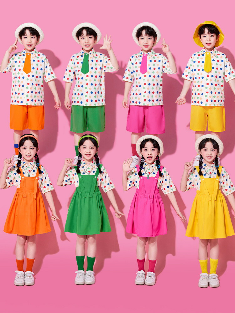 110-180 単品/2点セット キッズチアダンス衣装 子供服 夏服 カラフル 子ども 半袖シャツ スカート/パンツセット 上下セット 応援服 演出服 舞台演出服 運動会 合唱服 団体服 幼稚園
