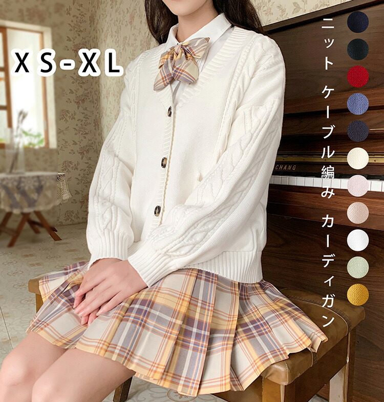 スクールカーディガン ニット ケーブル編み カーディガン 学生 コットン 無地 ゆったり Vネック 綿100% スクールセーター 秋冬 厚手 オールシーズン JK制服 女子 学校 高校 学生服