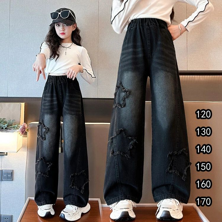 170 160 150 140 130 120 冬 秋 春 ワイドパンツ デニム ワイドパンツファッション感 ジーンズ ボトムス キ ブルーデニムパンツ