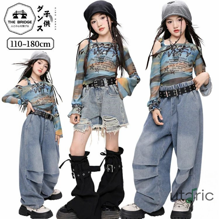 デニム服 チアダンス ダンス衣装 キッズダンス衣装 女の子 チアガール k-pop セットアップ ヒップホップ ダンスウェア かっこいい 応援団 練習着 子供服 韓国 ステージ衣装 ジャズダ jazz