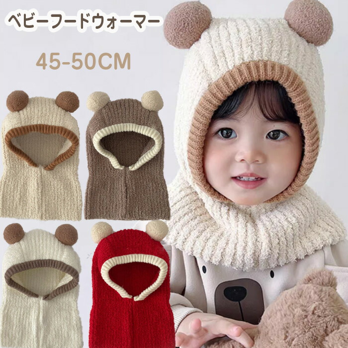 で人気 ! ベビー 帽子 フードウォーマー ベビー帽子 ベビーフードウォーマー ニット帽 防寒 秋 冬 赤ちゃん ナチュラル シンプル