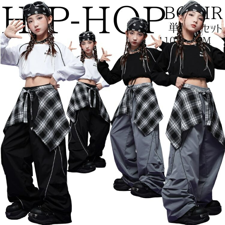 韓国 白 黒 キッズダンス衣装 女の子 ジャズ チア ヘソ出し ダンス衣装 セットアップ スカート カーゴパンツ トップス 長袖 子供服 ヒップホップ ファッション k-pop 衣装 jazz キッズ