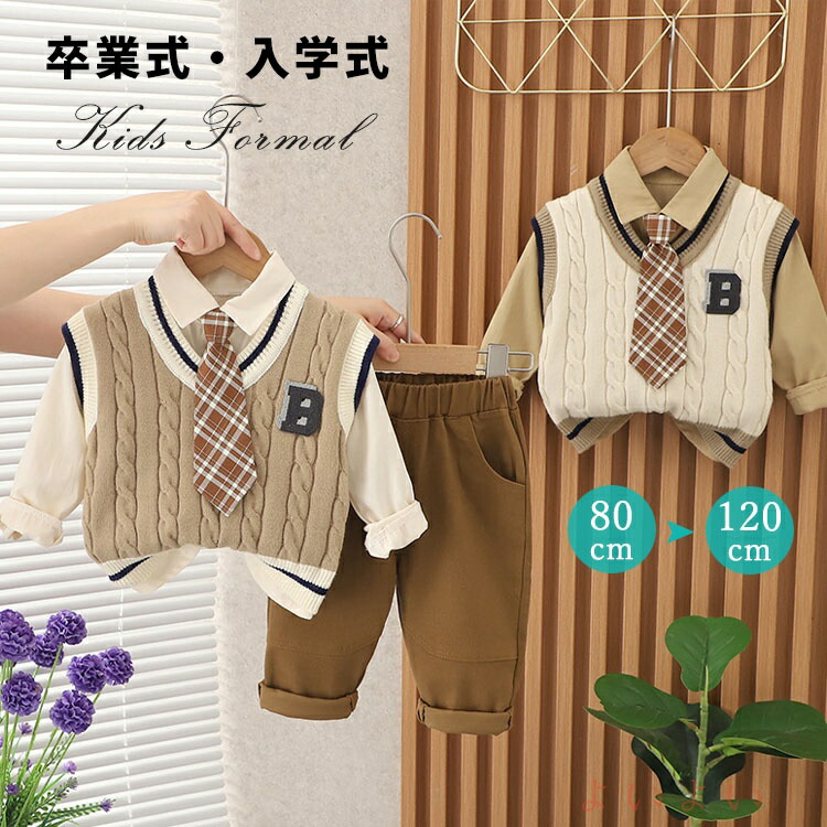 子供服 フォーマルスーツ 男の子 4点セット ニットベスト シャツ
