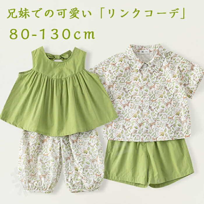 女の子 セットアップ 男の子 姉弟 リンクコーデ 兄妹 夏 スーツ 赤ちゃん こども 子供 ベビー ズボン シャツ 双子 兄弟 姉妹 涼しい 子ども お揃い 出産 ベビー服