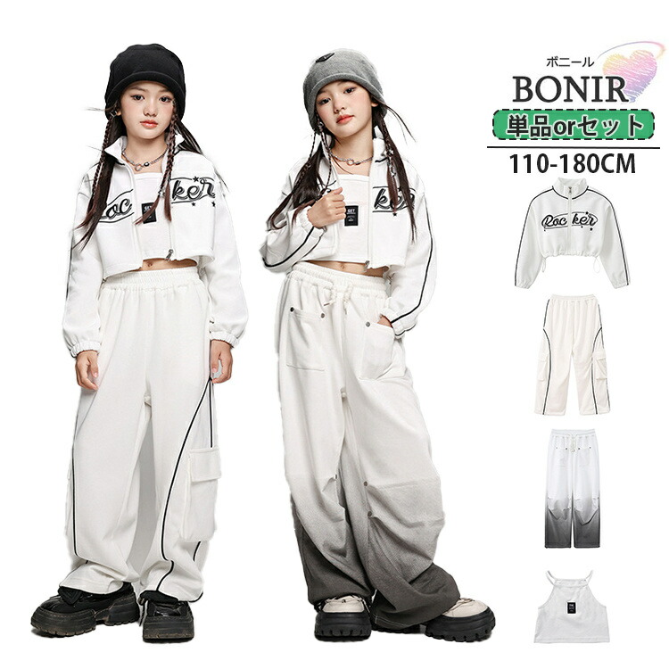 白 キッズ ダンス衣装 ダンス ジャケット 白ズボン キャミソール カーゴパンツ 長袖 パンツ ガールズ ダンスウェア 団体服 発表会 応援団 子供服 イベント jazz HIPHOP K カッコイイ