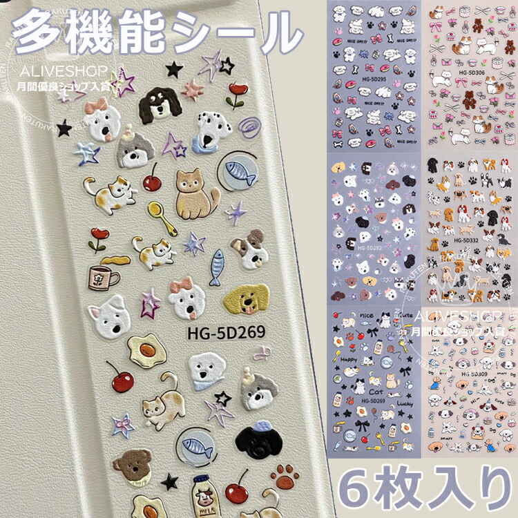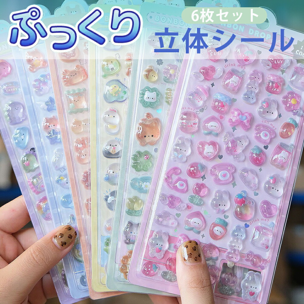 立体3Dぷっくりシール 6枚セット 手帳 スマホケースデコ用 うさぎ柄 つやつや光沢 シール交換 子供向け 贈り物対応 ごほうび