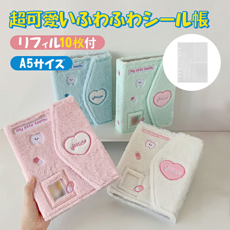 シール帳 シールバインダー シール手帳 A5サイズ 女の子向け 透明シール帳バインダー リフィルシート10枚付 ふわふわ可愛いデザイン 6穴 手帳 システム手帳 ノートブック 大容量収納 大 メモ帳
