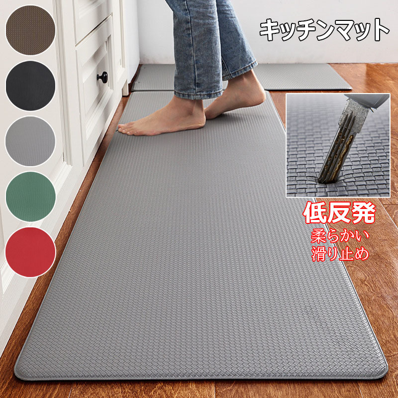 低反発素材で踏み心地良く吸水速乾性に優れた防水キッチンマット 洗濯可能でお手入れ簡単 つまずき防止滑り止め加工付き