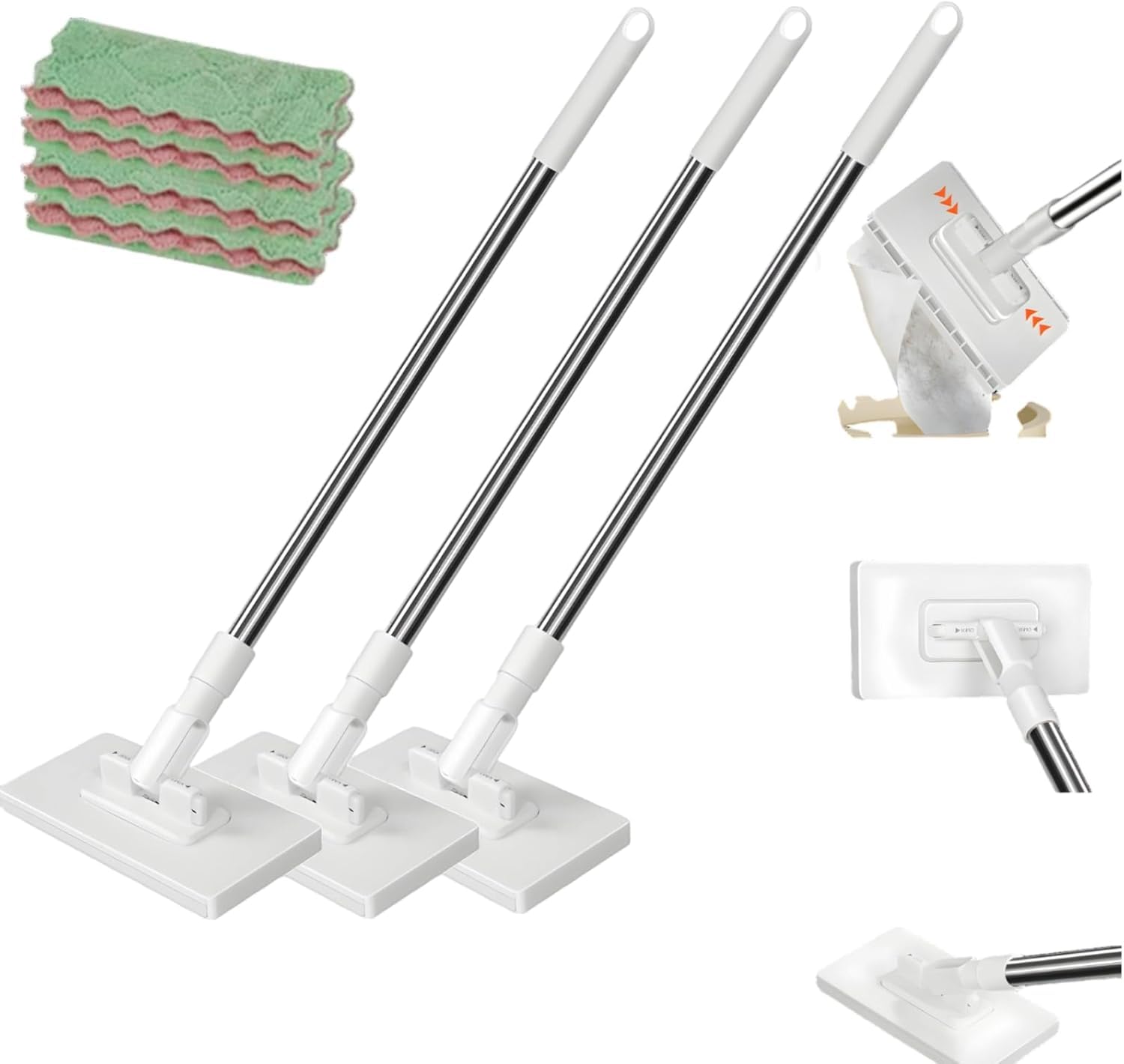 自動機能付き手洗い不要モップ怠け者のための福音 拭き掃除モップ フローリングワイパー 手洗い不要 自動布替え 360度回転 1秒で着脱 自動で挟み 再利用 フロア用掃除道具 窓 壁 鏡 延長ボール付き