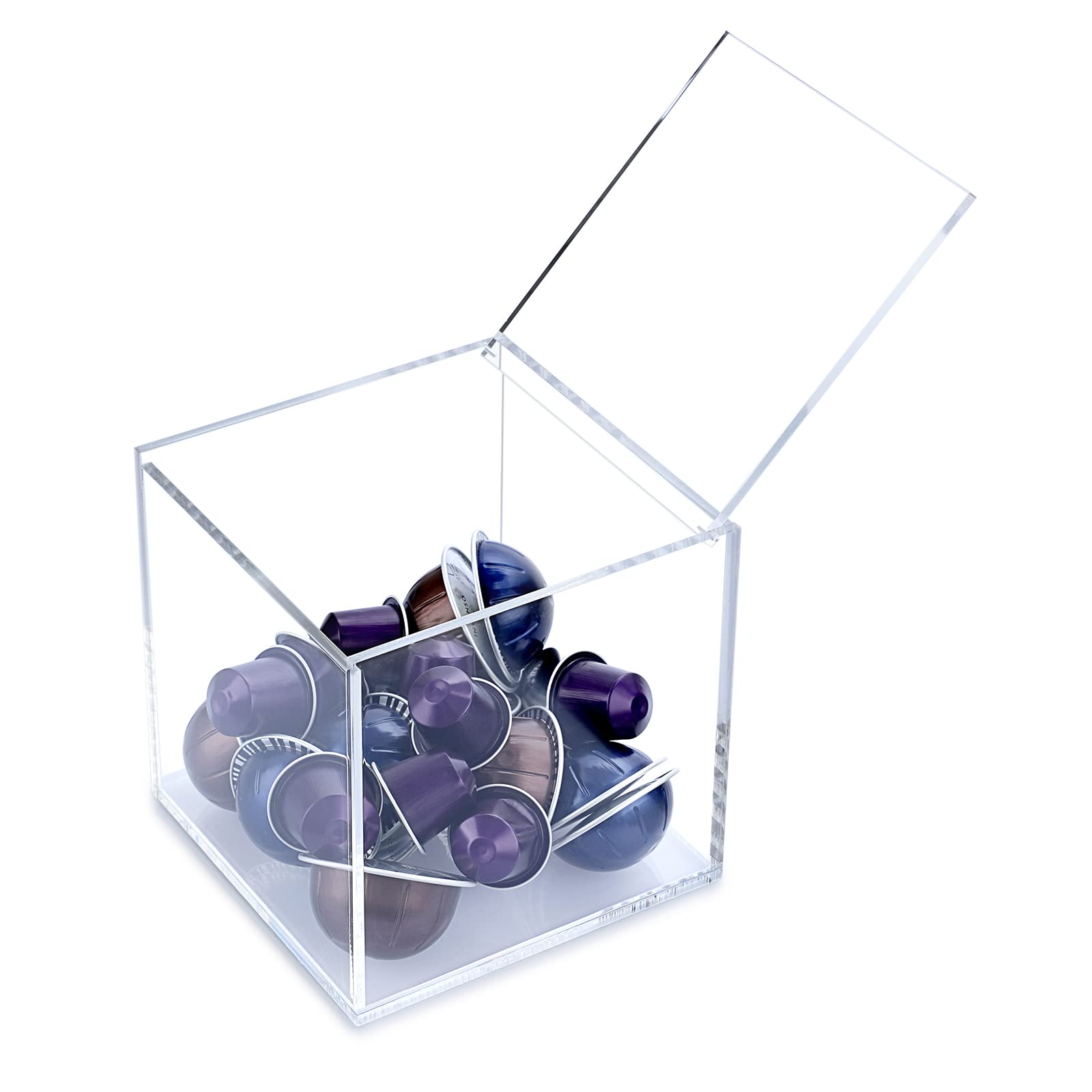 クリアアクリルコーヒーポッドホルダー 蓋付き ネスプレッソカプセル用 ティーバッグオーガナイザー キッチンデスクトップオーガナイザーボックス サイズ シュガーパケットストレージホルダー