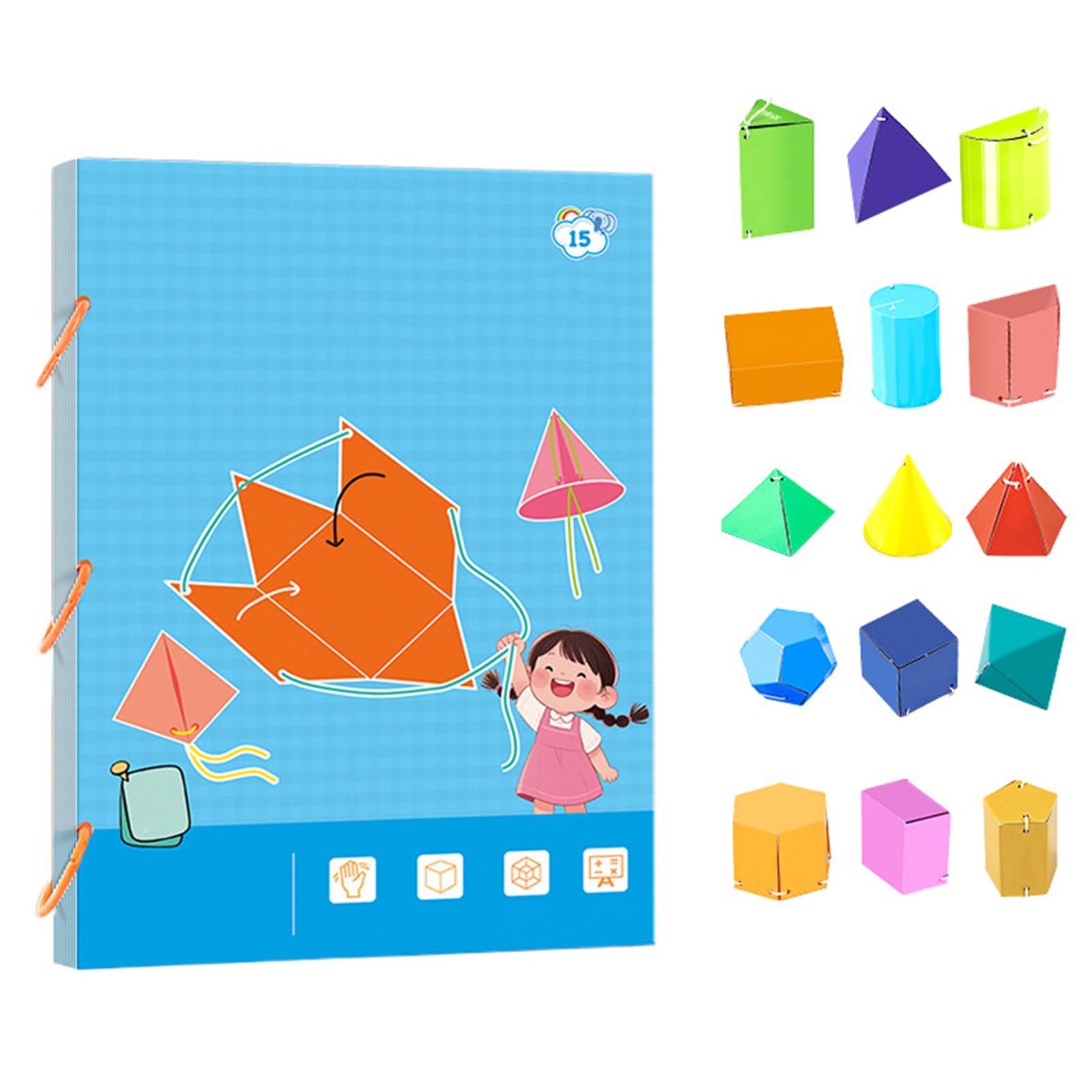 図形パズル 立体図形教材 15個の幾何学的形状 3折りたたみ 幾何学立体 空間認識力 約29.7*21 教師用補助具
