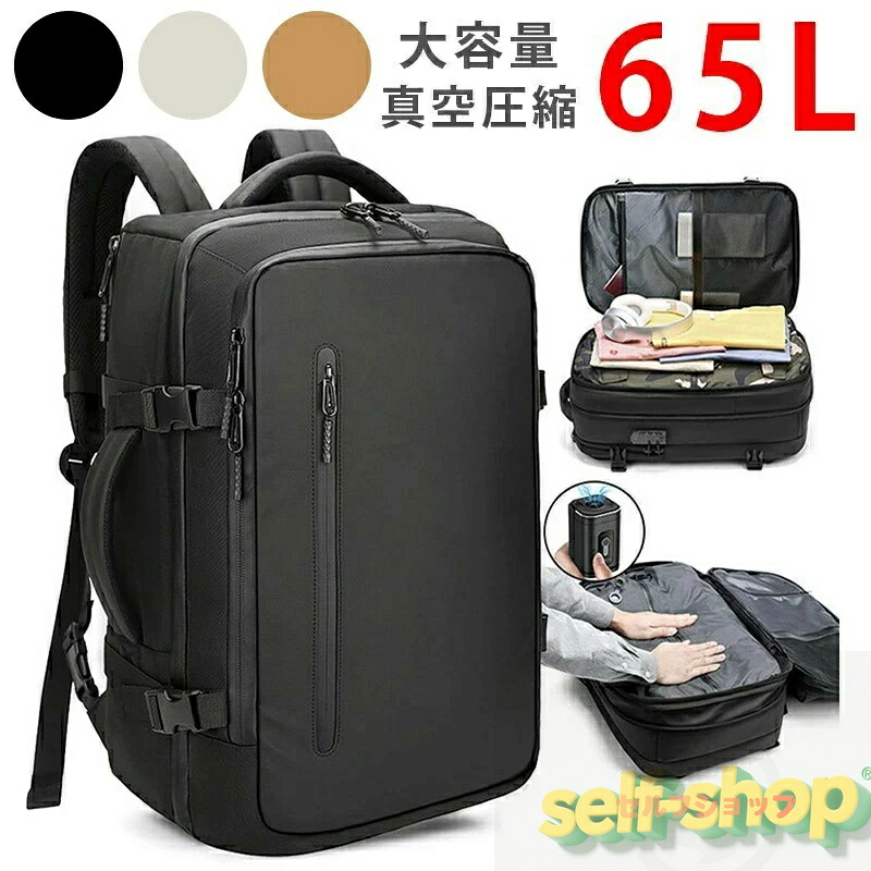 【】真空圧縮 リュック ポンプ付き エア真空 バックパック メンズ 17インチ対応 ビジネスバッグ 大容量 多機能 乾湿分離 キャリーオン機能 通勤 通学 出張 旅行 多層ポケット 65