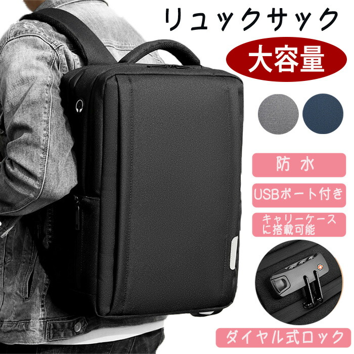 大容量で普段使いから旅行・出張まで幅広く活躍できます ポート付きでどこにも充電可能 ダイヤル式で盗難防止