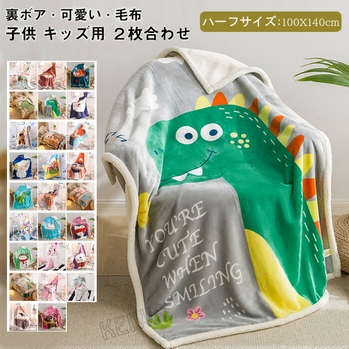 2枚合わせ毛布 ブランケット シープボア 可愛い柄 子供 キッズ 毛布 もこもこ 裏ボア とろける フランネル 合わせ毛布 もうふ あったか 洗える お昼寝ケット ハーフケット 100×14 ひざかけ