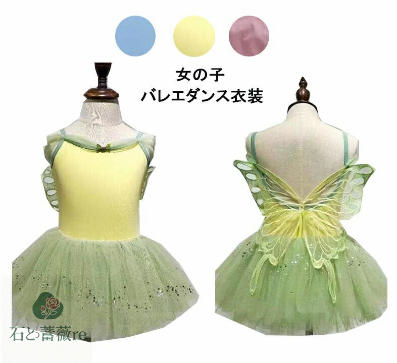 女の子舞台ダンス衣装 バックツバサつきレオタードワンピーススパンコールチュールスカートバレエドレス バレエ社交ダンス衣裳 tutu子供ダンス衣装 女の子 バレエ トレンチ衣裳発表会 合唱 ステ 練功服