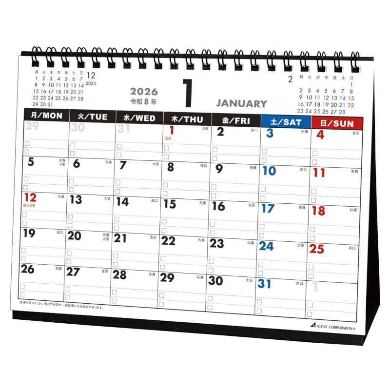 アクティブコーポレーション 2026 カレンダー 卓上 月曜始まり 2026年 1月始まり 26-560