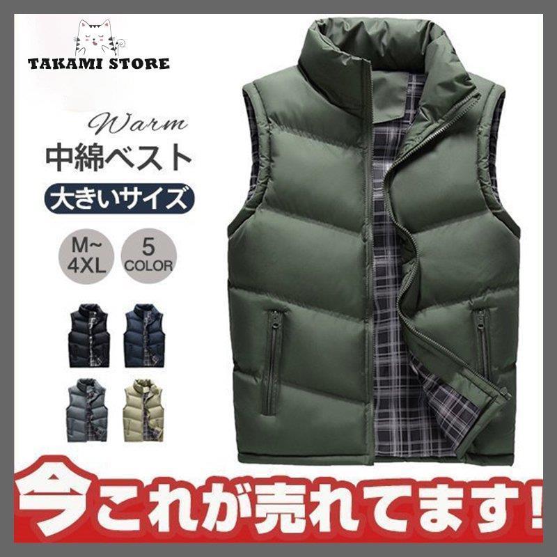 中綿ベスト ダウンベスト メンズ 秋冬 中綿ダウン アウター キルティング 立襟 アウトドア ベスト ファッション 厚手 袖なし デザイン