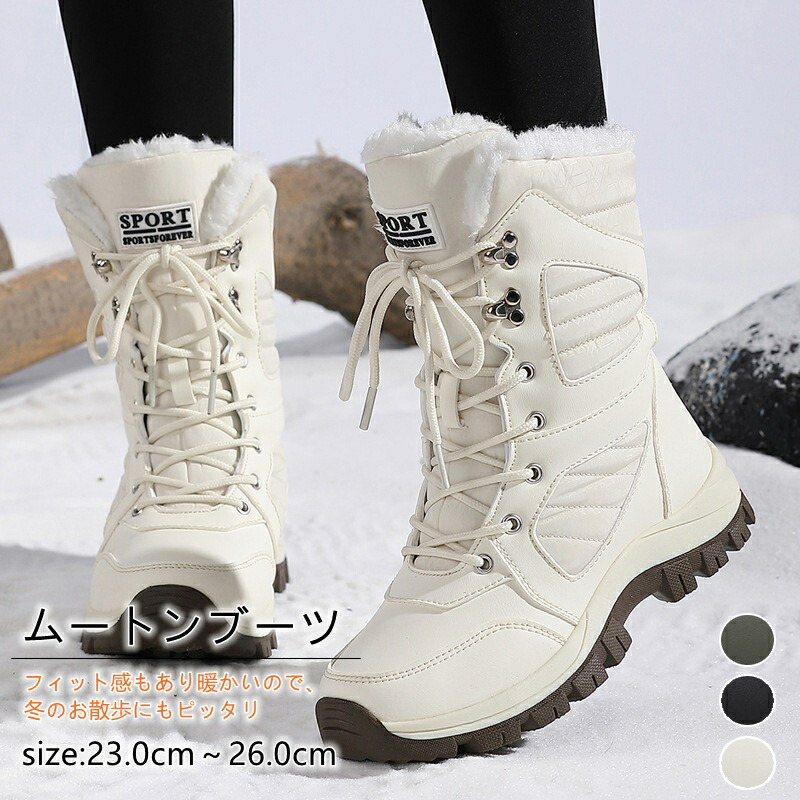 スノーブーツ レディース 滑らない 防水 防寒 歩きやすい ベージュ 黒 きれいめ 革 おしゃれ 撥水 裏起毛 雪靴 ボア付き 冬用 スノーシューズ 厚底 綿靴 かわいい 雪遊び 高 ウインターブーツ