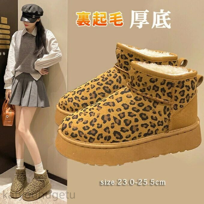 ムートンブーツ レディース 厚底ブーツ ショート丈 ヒョウ柄 美