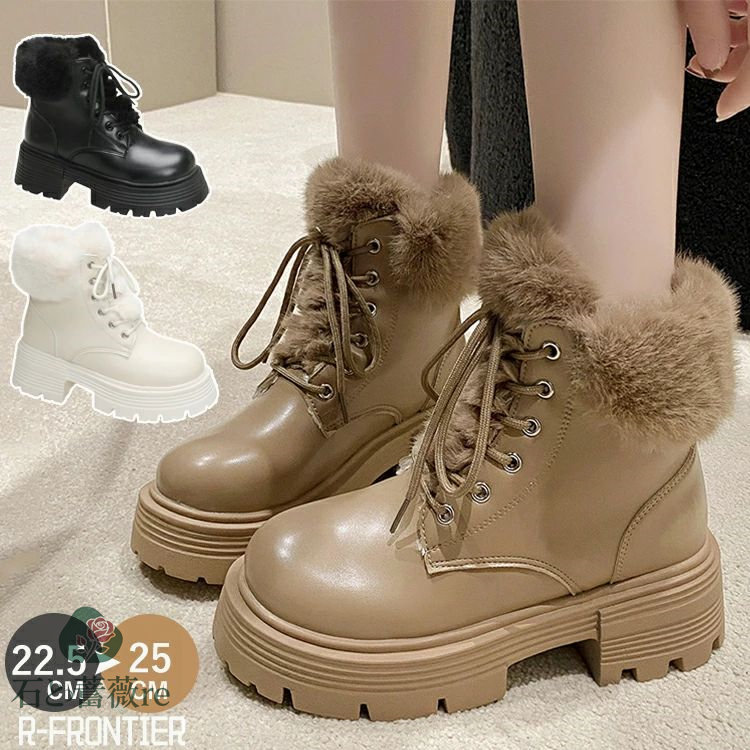 ボアショートブーツ 裏起毛 厚底ブーツ スノーブーツ ムートンブーツ ブーツ 防寒 ショートブーツ 暖かい 厚底 ショート 秋冬 もこもこ ボア靴 滑り止め 防水 内ボア 防寒保温 痛く ミドルブーツ