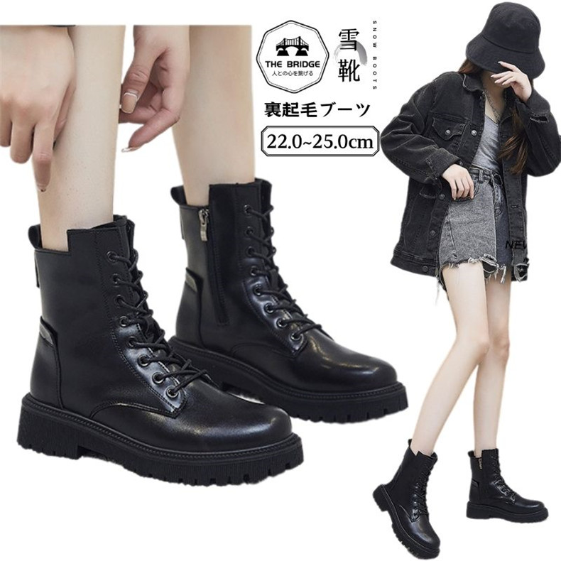 ミドルブーツ 黒 レディース 厚底 スノーブーツ 裏起毛 ボア付き 冬物 ブラック ムートン ブーツ ファスナー 学生 撥水 防寒 疲れない 歩きやすい 秋冬 雪靴 通勤 通学 22. シューズ