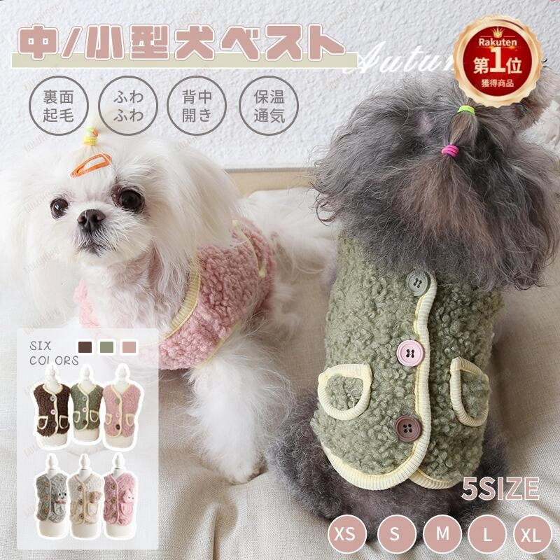 小 中型犬服 冬服 可愛いチョッキ トップス ボアベスト 糸のモコモコ感 かわいいジャケット 背中ボタン開き 重ね着 ペット洋服 ペット ドッグウェア ペット冬服 暖かい 室内室外 裏起毛 厚 秋冬春