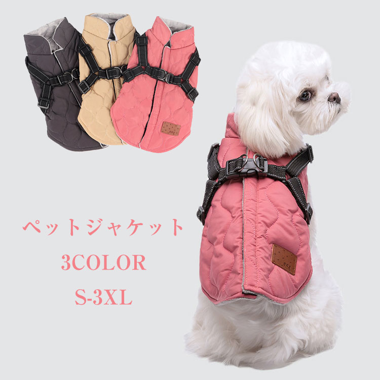 犬服 ジャケット 裏起毛 ペット服 厚手 防寒 一体型 犬 ベスト 綿服コート 猫 小型犬 中型犬 ハーネス コート ドッグウェア 洋服 ボア 暖かい アウター 裏ボア 防水 お出かけ ジャンパー