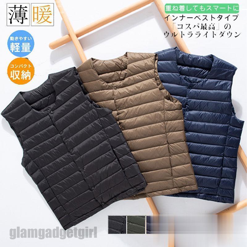 ゴルフベスト インナーダウンベスト メンズ ダックダウン入り ライトダウン ジレ 携帯ポーチ付 アウター 暖かい 仕事 通勤 ビジネス 軽い 登山 プレゼント ギフト 新生活 スポーツ